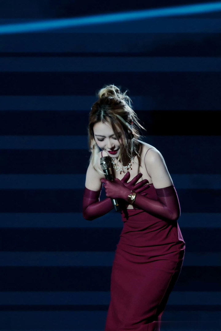 配资合作平台薛凯琪酒红礼裙配长手套献唱, 舞台上尽显优雅复古与灵动魅力
